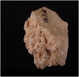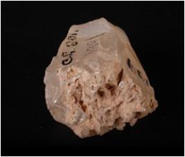 | Description / विवरण | Fragment of an agate core with flake and blade scars and partly rough surface. |
