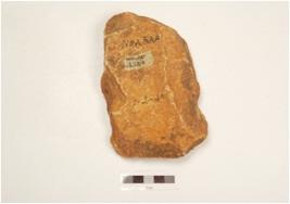 | Description / विवरण | A cleaver made of end struck flake, prepared platform on proximal end, flake scars on both sides and biconvex in section. |
