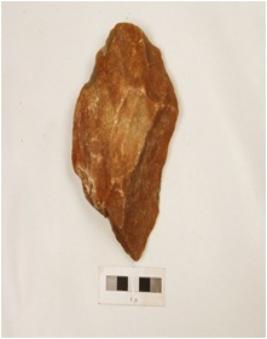 | Description / विवरण | An end scraper with prepared platform, prominent bulb on proximal end and irregular edges. |
