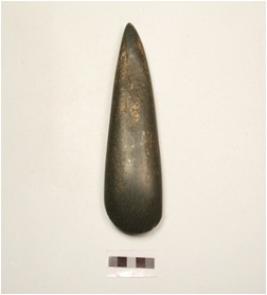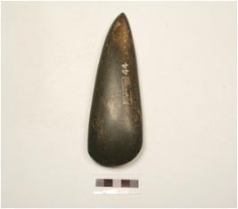 | Description / विवरण | A dolerite adze with polished surface worheny edge is sharp and triangular in shape. |