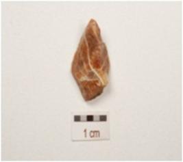 | Description / विवरण | Utilized flake made on chert with flake scars on dorsal, trapezoid in section and use wear marks on edges. |
