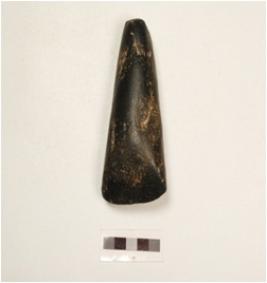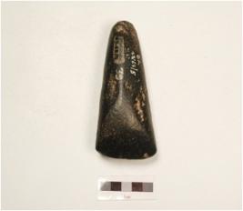 | Description / विवरण | A dolerite adze with polished surface, edge is sharp triangular in shape. |