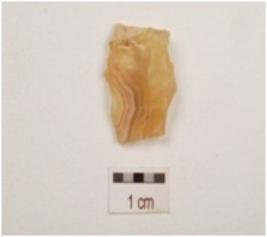 | Description / विवरण | Core made on chalcedony with two blade scars on surface and prepared platform. |