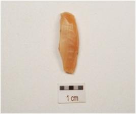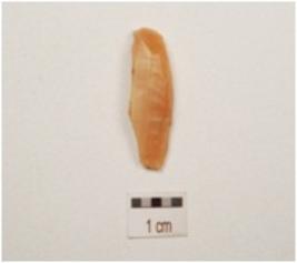 | Description / विवरण | Core made on chalcedony with three blade scars on surface, prepared platform and raw material given heat treatment. |
