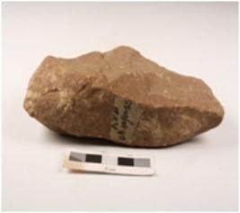 | Description / विवरण | Chopping tool made on side struck flakes, alternate flakes, use ware marks, diffused bulb on ventral and stone hammer technique. |