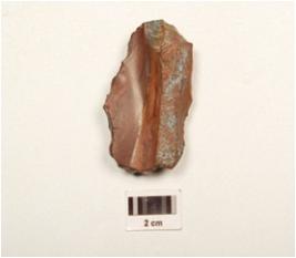 | Description / विवरण | A stone scraper made of end struck flake, flake scars on both sides and plano convex in section. |