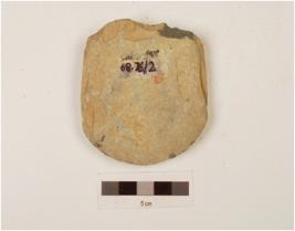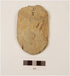 | Description / विवरण | Axe with a broken butt end, convex and broad cutting edge, oval corss section, chippings on surface, polished surface. |