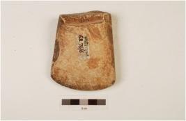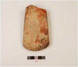 | Description / विवरण | Fragment of an axe, with sharp cutting edge other end broken, polished surface, rectangular cross section, convex working edge. |