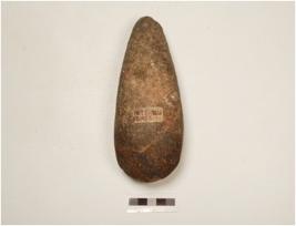 | Description / विवरण | A celt made of quartzite, angular round butt, edge, fully polished, surface and polish visible along the edges. |