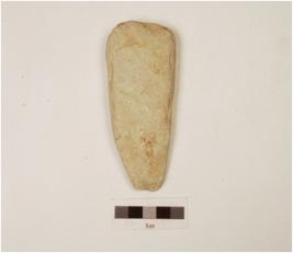 | Description / विवरण | Celt with a broad working edge, narrow butt end, polished surface, slight chippings on surface, rectangular cross section. |
