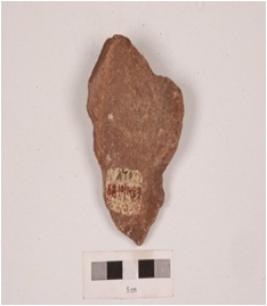 | Description / विवरण | A quartzite stone side scraper made on end struck flake, prepared platform, diffused bulb at ventral surface and irregular retouch at cutting edge. |