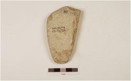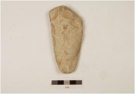 | Description / विवरण | Adze with a pointed butt and a broad working edge partly broken, plano convex cross section, polished surface, slight flakings on surface. |