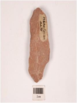 | Description / विवरण | A quartzite stone side scraper, made on end struck flake, prepared platform, diffused bulb on ventral surface and irregular retouch at cutting edge. |