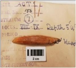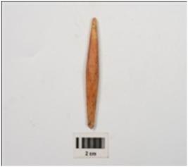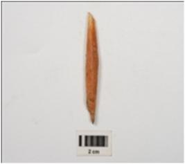 | Description / विवरण | A bone point with broken both the ends, ridges on surface, polished surface. |