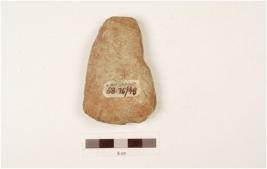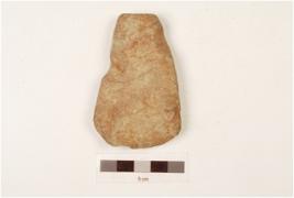 | Description / विवरण | Celt with a pointed butt, convex and broad working edge, polished surface, slight chipping on surface, oval shape corss section. |