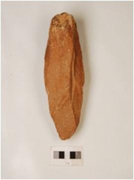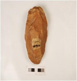 | Description / विवरण | A quartzite core based handaxe, prominent bulb on venteral side and flakes scars on surface. |