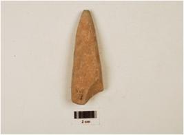 | Description / विवरण | Celt with a pointed butt, broken at working edge, broad working edge, polished surface, rectangular cross section. |