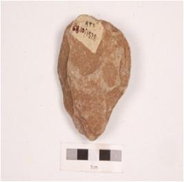 | Description / विवरण | A side scraper, made on end struck flake, alternate flake on both side surface and irregular retouch at cutting edges. |