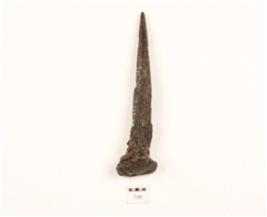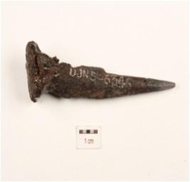 | Description / विवरण | A iron nail with flat broken circular head, pointed at tip, broken and mended with circular in section. |