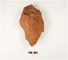 | Description / विवरण | A handaxe made on quartzite pebble, plano-convex in cross section, wavy cutting edge and flake scars on both sides. |