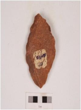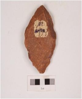 | Description / विवरण | A side scraper made on quartzite end struck flake with blade scars on one side and regularly retouched edges. |