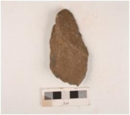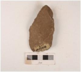 | Description / विवरण | A quartzite side scraper made on end struck flake, flake scars on dorsal side, irregular retouch on cutting edges and prepared platform. |