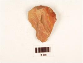 | Description / विवरण | A scraper made on chert side struck flake, irregularly retouched working edge, prepared platform, triangular in cross section and prominent bulb on ventral side. |
