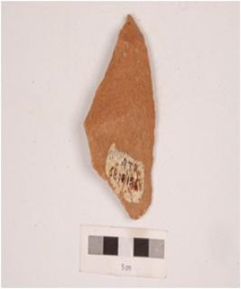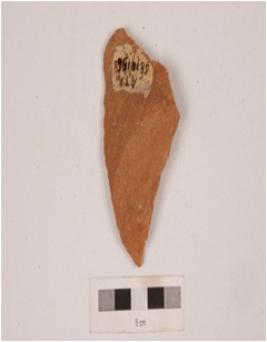 | Description / विवरण | A quartzite stone borer cum scraper, made on end struck, diffused bulb on ventral surface, irregular retouch at cutting edge and projected point. |