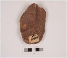 | Description / विवरण | A side scraper made on quartzite end struck flakes with flake scars on both sides, retouched edge and cortex partly intact. |