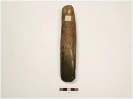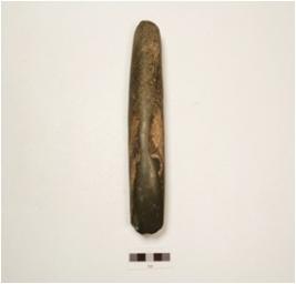 | Description / विवरण | A chisel made of basalt, round butt end, bevelled edge, fully polished surface, polish along the edges and circular cross section. |