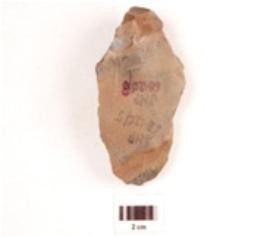 | Description / विवरण | Scraper made on chert end struck flake, flake scars on dorsal side, prepared platform, prominent bulb, irregular retouched edge and plano-convex cross section. |
