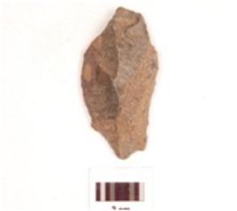 | Description / विवरण | Scraper made on chert end struck flake, flake scars on one side, prepared platfrom and diffused bulb, irregular retouched edge, triangular cross section. |