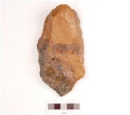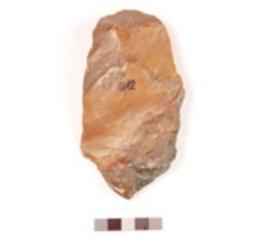 | Description / विवरण | Scraper made on chert end struck flake, flake scars on both sides prepared platfrom, prominent bulb on ventral side, irregular retouched edge. |