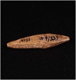| Description / विवरण | A bone point with pointed tip, brownish and smooth surface. |