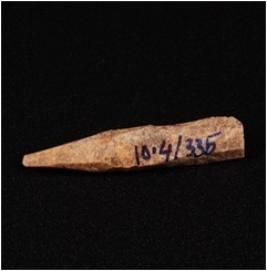 | Description / विवरण | Point of bone with pointed tip,light brown, uneven surface and one end broken. |