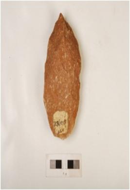 | Description / विवरण | A handaxe made on quartzite flake with flake scars on both sides and irregularly retouched edges. |