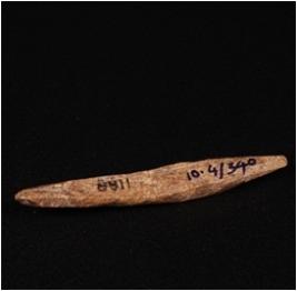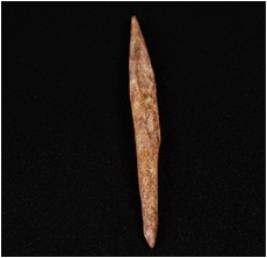 | Description / विवरण | A bone point with pointed tip, brownish smooth surface and sharp edges. |