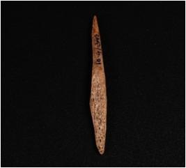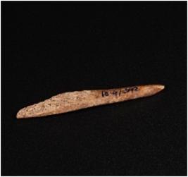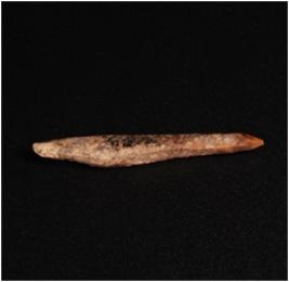 | Description / विवरण | A bone point with pointed ends, brownish and smooth surface. |