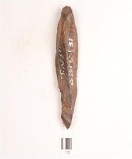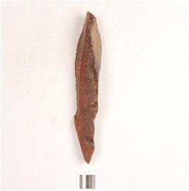 | Description / विवरण | Flake made on chert flake scars on both sides, prepared platform, bulb absent and triangular cross section. |