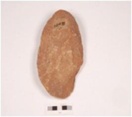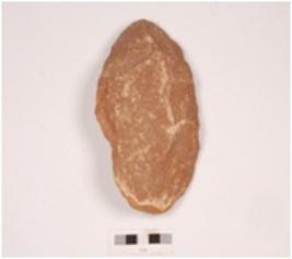 | Description / विवरण | A hand axe, made on end struck flake, alternate flake on both side surface and irregular retouch at cutting edges. |