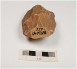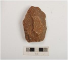 | Description / विवरण | A side scraper made on quartzite end struck flake with flake scars on both sides, prepared platform, retouched edges and cortex partly intact. |