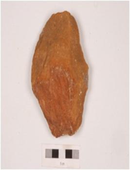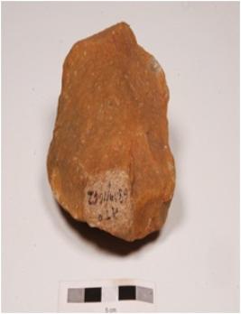| Description / विवरण | A side scraper on flake, end struck, flakes on both dorsal and ventral side, diffused bulb on ventral side, cortex on dorsal surface and retouches along the cutting edge. |
