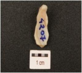 | Description / विवरण | A flake made of agate with flake scars and ventral side is smooth. |