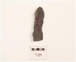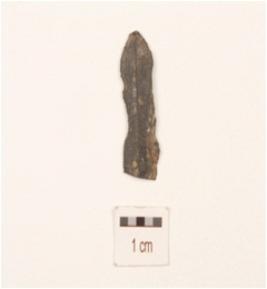 | Description / विवरण | A blade made of chert, mid ridge on dorsal side and diffused bulb on ventral side, use wear marks on edges. |