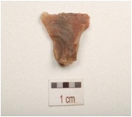 | Description / विवरण | Catnelian flake made on side struck, bulb of percussion on the ventral side, pointed distal end, use wear marks on the cutting edges. |