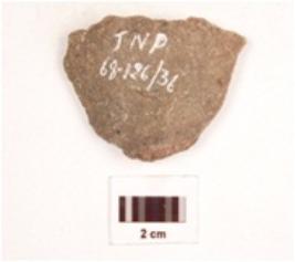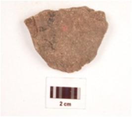 | Description / विवरण | Flake made on chert, partly broken and irregular retouched edge. |