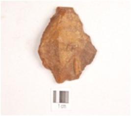 | Description / विवरण | Scraper made on chert end struck flake, flake scars on one side, irregular retouch edge and plano-convex cross section. |