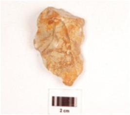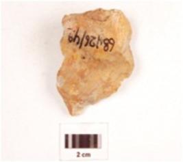 | Description / विवरण | Scraper made on chert end struck flake, flake scars on both sides, prepared platform, diffused bulb, irregular retouched edge and triangular cross section. |