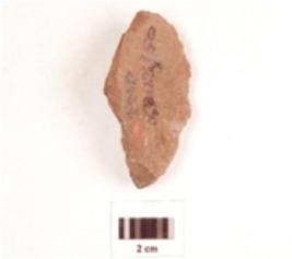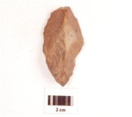 | Description / विवरण | Scraper made on chert, prepared platform, bulb absent irregular retouched edge and triangular cross section. |