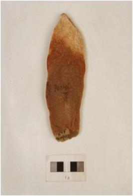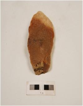 | Description / विवरण | Side scraper with two working edges, end struck, striking platform, four flake scars on surface and positive bulb on ventral |